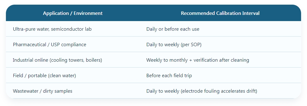 Always recalibrate after cleaning the electrode or if you suspect contamination.
