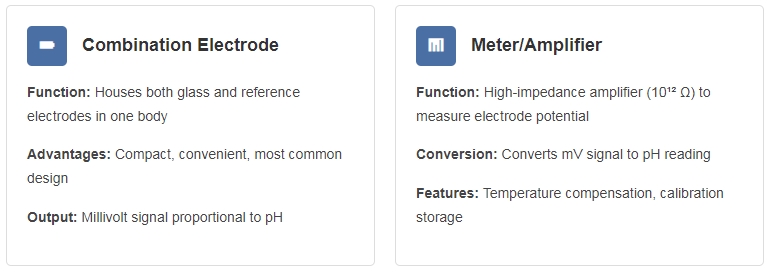 A complete pH measurement system consists of three main components working together:
