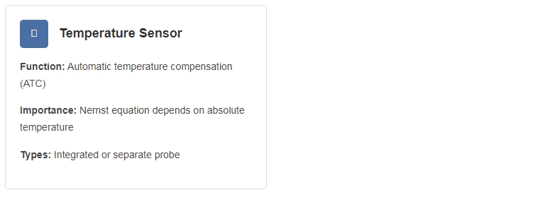 Critical Design Feature: The pH meter must have extremely high input impedance (10¹² Ω or higher) to measure the glass electrode potential without loading it. Standard voltmeters cannot measure this signal directly due to the electrode's very high internal resistance.